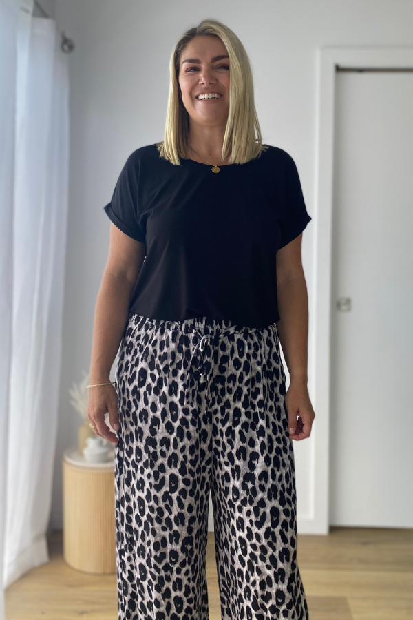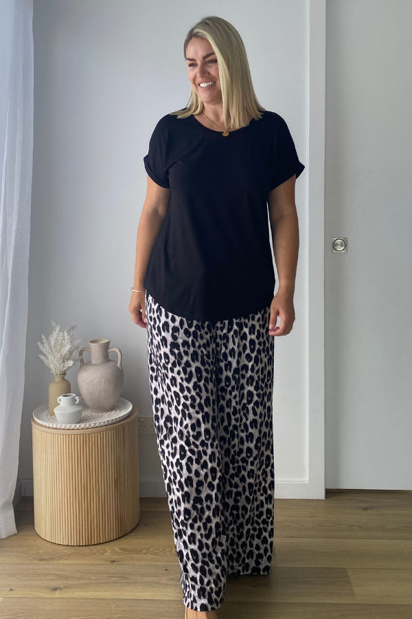 The Mila Bamboo Tee in Black is a timeless essential for every wardrobe. Made from luxuriously soft bamboo, this relaxed-fit tee combines comfort with style. Designed with a round neckline, rolled sleeve detail, and curved hem, it’s an effortless staple you’ll reach for again and again.