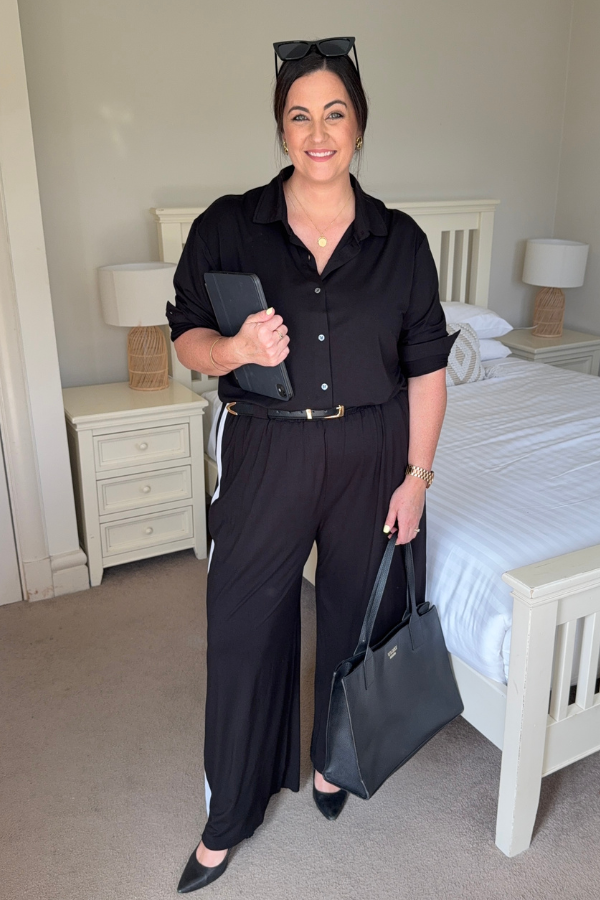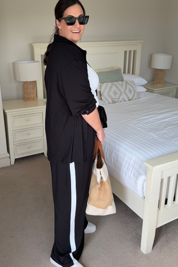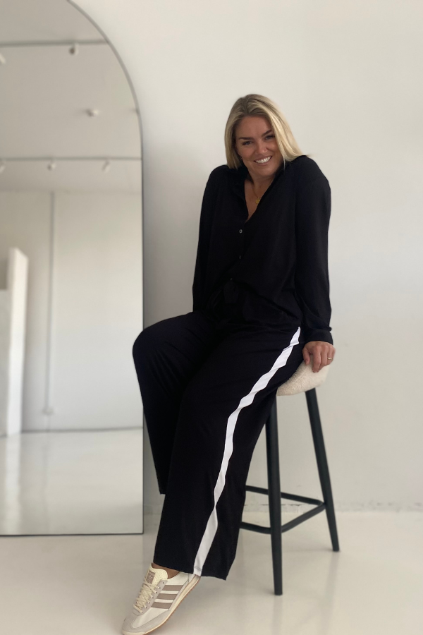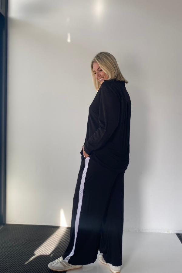 Alexa Bamboo Wide Leg Pant - Black With White Stripe