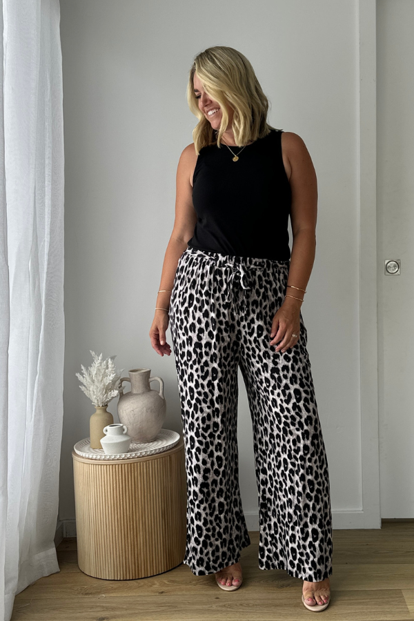 Alexa Bamboo Wide Leg Pant - Grey Leopard