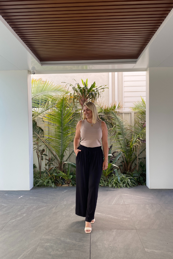 The Gia Bamboo Pants in Black bring a modern twist to our much-loved wide-leg silhouette. Featuring the same relaxed fit as our Alexa Pants, the Gia is designed with a flattering paperbag waistband and adjustable drawstring, adding definition and style while maintaining everyday comfort.